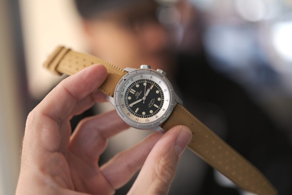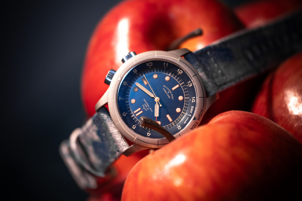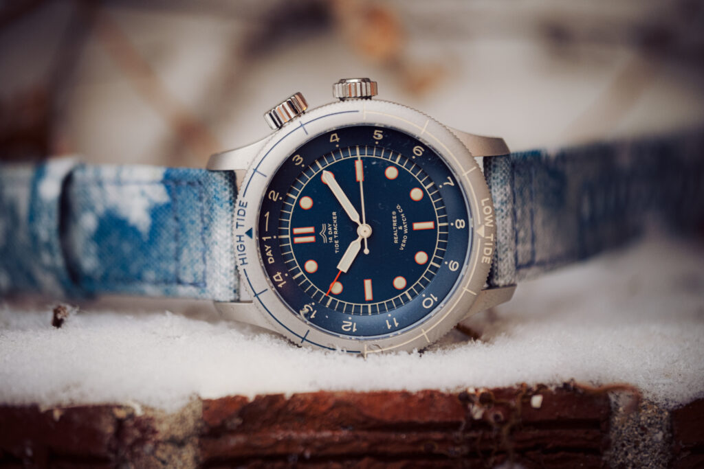 The word that kept recurring in my mind as I wore this watch was “gentle.” Every surface transition is smoothened, and the mirroring of the hands with the Tide Tracker logo, a bespoke logo for this watch, instantly soothes the wearer. The smoothened surfaces are elevated by impeccable fit and finish, resulting in a watch that always feels substantial and highly intentional in its functional stance.
