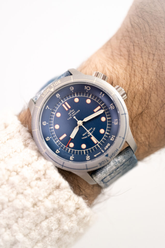 The typeface used on the Tide Tracker is one that has been designed by and used on several Veros to date, which makes this instantly recognizable as a watch from the brand. The numerals use a typeface named Decimal, and they complement Vero’s in-house font perfectly, which resulted in the word “masterpiece” resonating within my head as I first held the Tide Tracker in the autumn of last year.